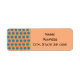 These return address labels have a mid-century modern design of open orange circles with solid teal circles running across the pattern with teal vertical lines and orange horizontal lines.