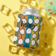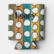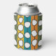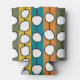 This can cooler has a mid-century modern design of white “deformed” circles connected with black lines on a field of green, orange, turquoise, and gold strips. If you like the design but prefer different colors, message me.