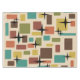 A simple 1950s abstract art design with rounded squares and rectangles in a disarrayed multicolored pattern.