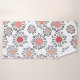 This towel set has a bath towel with a mid-century modern design of flowers made of circles in shades of pink, cranberry and beige and black lines, a dark pink washcloth, and a lighter pink hand towel.