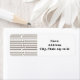 This return address label has a mid-century modern inspired design of lines with circles on the ends in camouflage colors of two shades of brown.
