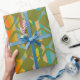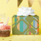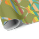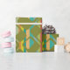 This wrapping paper has a mid-century modern design of rounded green rectangles with holes on a background of stripes in mid-century modern colors. If you like the design but prefer different colors, message me.
