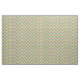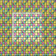 This fabric has a mid-century modern design of crescent moons divided horizontally into three colors, pink, blue, lavender, or seafoam, split in half and scattered on a grid with a yellow background. If you like the design but want different colors, message me.