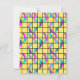 This flat, blank notecard has a mid-century modern design of crescent moons divided horizontally into three colors, pink, blue, lavender, or seafoam, split in half and scattered on a grid with a yellow background. Add your own personal message on the back. If you like the design but want different colors, message me.