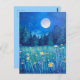 Postcard in a watercolor landscape of a meadow of wildflowers and a dark forest under a full moon