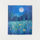 Tapestry in a watercolor landscape of a meadow of wildflowers and a dark forest under a full moon