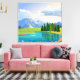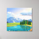 Beautiful Meadow background with trees , lake and mountains Canvas Print.