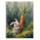 Capture the charm of nature with this whimsical watercolor bunny notebook, featuring an adorable rabbit holding a large carrot while standing in a lush meadow surrounded by a serene green forest. This beautifully illustrated journal is perfect for nature lovers, animal enthusiasts, and those who appreciate artistic, cottagecore aesthetics.