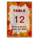 Add your autumn wedding information to this beautiful card. All text is adjustable to move, resize, and change the font and color. Convert this for any occasion. In the middle of the meadow sits a white antique-looking table with chairs. On top of the table is a flower pot with red flowers. In the background are the trees that are starting to change with the early fall.