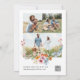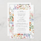 The front showcases a stunning watercolor wildflower border in vibrant shades of pink, orange, blue, yellow, and lavender — framing your wedding details in timeless typography. The back includes three personal photos and a custom QR code linking to your wedding website or RSVP page, allowing guests to respond instantly and effortlessly.