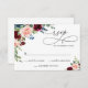 Elegant Burgundy Navy Eucalyptus Roses Floral Wedding RSVP Card.