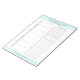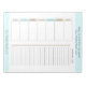 Discover a charming notepad weekly meal planner featuring a simplistic design with light colors of soft aqua, taupe, and cream. This notepad contains boxes for every day of the week where you can write your meals for each day. A column to add your shopping/grocery items to. It serves as an excellent tool to help you remain organized with all of your meal prep.