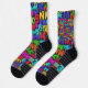 This fun Halloween socks are bright and colorful. The small print is crisp and shows the fun details. The softness of the socks feels nice on my feet and ankles. .