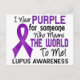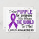 Your loved one battling Lupus is extraordinary. Put on your purple to support this pillar of strength with our I Wear Purple For Someone Who Means The World To Me Lupus support t-shirts, apparel, gifts, and merchandize featuring contrasting text fonts and a striking purple Lupus awareness ribbon. This eye-catching Lupus design is sure to turn heads in your direction as you declare your support for your loved one and share the very important message of Lupus awareness.