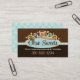 Nifty retro color scheme on this baker, baking, bakery or pastry chef business card with measuring cup, rolling pin, and mixing spoon with fat swirls and dots; brown, sandy orange, light green blue and faded yellow. Perfect card for old fashioned sweets, breads, and desserts baking.