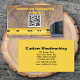 This business card front features a close-up photograph of stained cedar wood with a measuring tape and QR code placeholder. Personalize the template, remove any text or click customize to select a font style, size, and color you prefer. This wood photograph front business card design may work well for wood restoration, carpenter, construction jobs or maybe your business.
