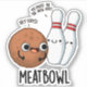 Meatbowl Funny Meatball Pun features a cute meatball meeting two bowling pins. Perfect Puns gift for family and friends who love cute bowling puns.