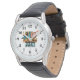 This men's classic leather strap watch is shown in black with a sporty basketball art print.