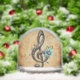 Mechanical clef and flowers to the beat of the clocks. A steampunk-style treble clef, rendered in dark metal with bronze accents and intricate detailing. The clef is adorned with blue flowers that have clock faces at their centers, adding a whimsical touch. Musical notes float near the clef, and small droplets hang from its curves.
