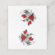 Contour, mechanical crescent moon with gears, decorated with red roses with black spiked stems and leaves on white background. Steampunk