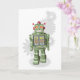 Fun retro robot birthday greeting card. Inside reads, "Warning! Warning! Birthday approaching!" Smaller red type below says: "Have a happy one!"