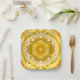 Paper plates in a twelve point, batik effect, medallion pattern, in shades of dark to light mustard gold and warm golden yellow