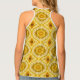 Printed tank in a twelve point, batik effect, medallion pattern, in shades of dark to light mustard gold and warm golden yellow
