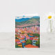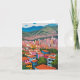 This greeting card features a colorful oil painting of Medellin, Colombia.