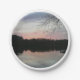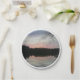 This photo was taken over looking the lake during sunset. The sky was very colorful with colors of pink, blue and a very light green. The reflection on the lake was beautiful on the lake. A white border was added. The paper plates are available in assorted sizes.