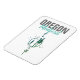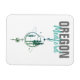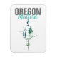 Modern word art features Oregon in distressed gray font with Medford in a modern aqua script font with geometric trees logo style graphic