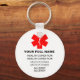 A low-cost, customizable alternative to medi-alert jewelry. Clip on your keys, zipper, etc.