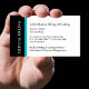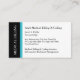 Modern medical billing and coding business cards in a minimal design that includes a black, white, and blue background, simple organized text layout you can personalize, and designed for a business that helps doctor offices and hospitals manage their receivables and billing.