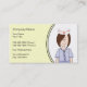 Medical business cards template including a nurse graphic image wearing a nursing cap and badge and yellow background color you can change. Personalize the text the way you want and let this make a great first impression no matter if you're a registered nurse, medical clinic, or home health healthcare service.
