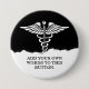 Medical Caduceus Custom Text Solid Black Pinback Button