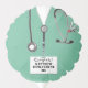 Creative doctor party decor featuring hospital scrubs and a stethoscope designed for medical school graduate. Edit text to add physician's name.