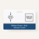 Medical Doctor modern logo and photo ID badge template with ability to add your own logo and professional portrait photo by simply replacing our template images with our own company logo and picture. Designed for hospital, doctor office, or medical clinic staff in a budget friendly design.