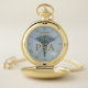 Professional medical pocket watch featuring elegant clean gold and light blue caduceus with P and A letters for "physician assistant". Perfect for any business company related to healthcare industry: medical practice, medical office, doctor office, pharmaceutical industry, drugstore, clinic and hospital. For hospital staff, clinic employees, physicians; classy, noble, elegant and precious.