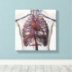 Medical illustration of male chest with arteries, veins, heart and rib cage.
