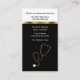 Multi line medical insurance business cards with powerful black and white two side design that includes a gold colored divider line printed on the front, a medical stethoscope symbol, and text layout you can customize and personalize, all presented on a vertical business card format. Best business cards for a medical insurance agent, agency, and their sales reps.