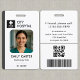 A modern medical ID badge template with a clean gray colorway, featuring space for your photo, name, job title, ID number, and custom logo. Designed to be versatile for medical technicians, lab staff, radiology teams, nurses, and hospital support employees. The back includes placeholders for a barcode, QR code, and lost and found contact information for added functionality and security. Perfect for hospitals, clinics, labs, and healthcare organizations that need customizable, professional staff identification.