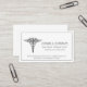 A minimal and professional Medical Professional business card featuring a medical Chiropractic style caduceus symbol on a simple black and white bordered one-sided card.