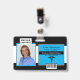 Medical staff Photo ID. Add your photo, name, business location and scanning code to this photo Badge. Blue and black healthcare worker badge.
