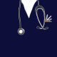 Creative doctor graduation announcement for medical school graduate featuring navy hospital scrubs and stethoscope art.