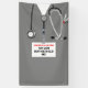 Creative medical school graduation party congratulations banner for doctor grad featuring scrubs and funny Swiss Army knife. Edit text to add name and medical credentials.