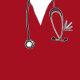 Creative doctor graduation congrats banner featuring unique red hospital scrubs for medical school grad party. To personalize edit text to add physician's name and medical credentials.