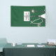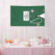 Creative medical school graduation congratulations banner decoration for doctor grad featuring unique green scrubs, stethoscope and funny Swiss army knife. To personalize edit text to add name of physician.