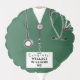 Creative doctor graduation party decor featuring green hospital scrubs and a stethoscope, designed for medical school graduate. To personalize edit text to add physician's name.