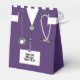 Medical-themed party favor boxes for doctor graduation party, featuring purple hospital scrubs. Edit text to personalize for medical school graduation celebrations.