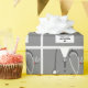 Creative doctor giftwrap design featuring gray hospital scrubs, stethoscope, and a Swiss Army knife. Edit text to add physician's name.