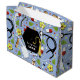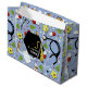 Creative personalized medical school graduation gift bag for doctor grad featuring healthcare supplies, flowers and graduate tam. To personalize edit text to add name of physician.